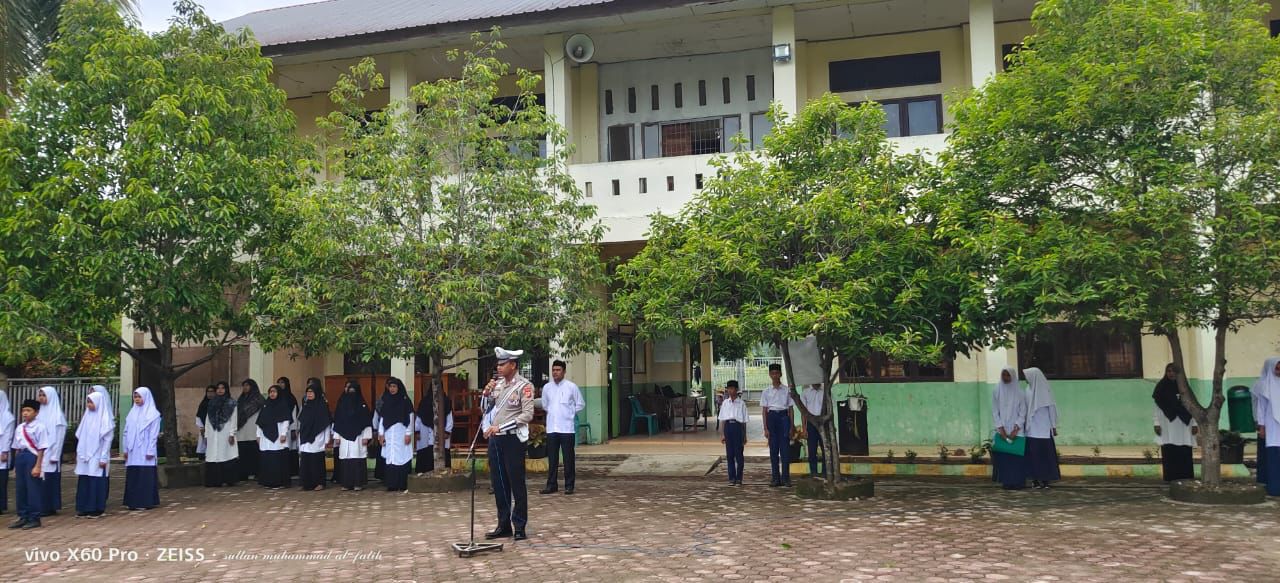 APJN.NET- PIJAY– Personel Satuan lalu lintas Polres Pidie Jaya menjadi pembina upacara di Mtsn 4 Pidie Jaya (Pijay) untuk melakukan sosialisasi dan edukasi tentang tertib berlalulintas, Senin 14 November 2022.