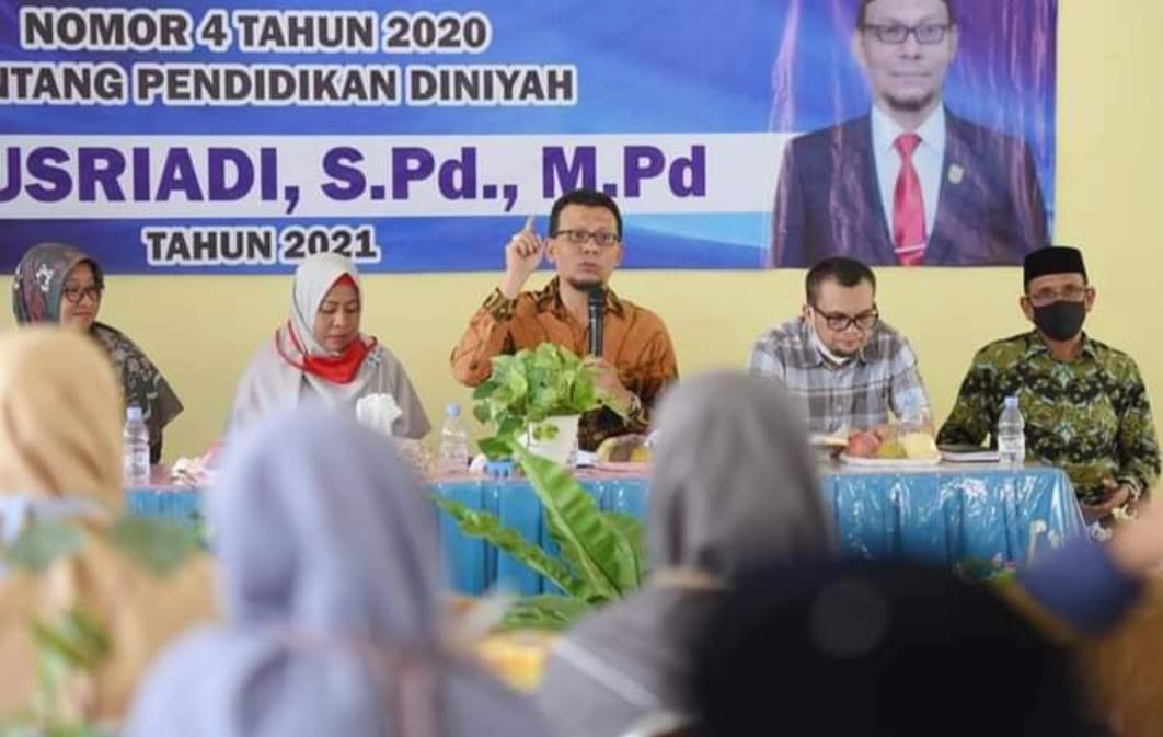 APJN.NET – Banda Aceh | Ketua Komisi I DPRK Banda Aceh, Musriadi Aswad, menyosialiasikan Qanun Kota Banda Aceh Nomor 4 Tahun 2020 tentang Pendidikan Diniyah kepada perwakilan guru SMP se-Banda Aceh yang mengasuh mata pelajaran Diniyah.