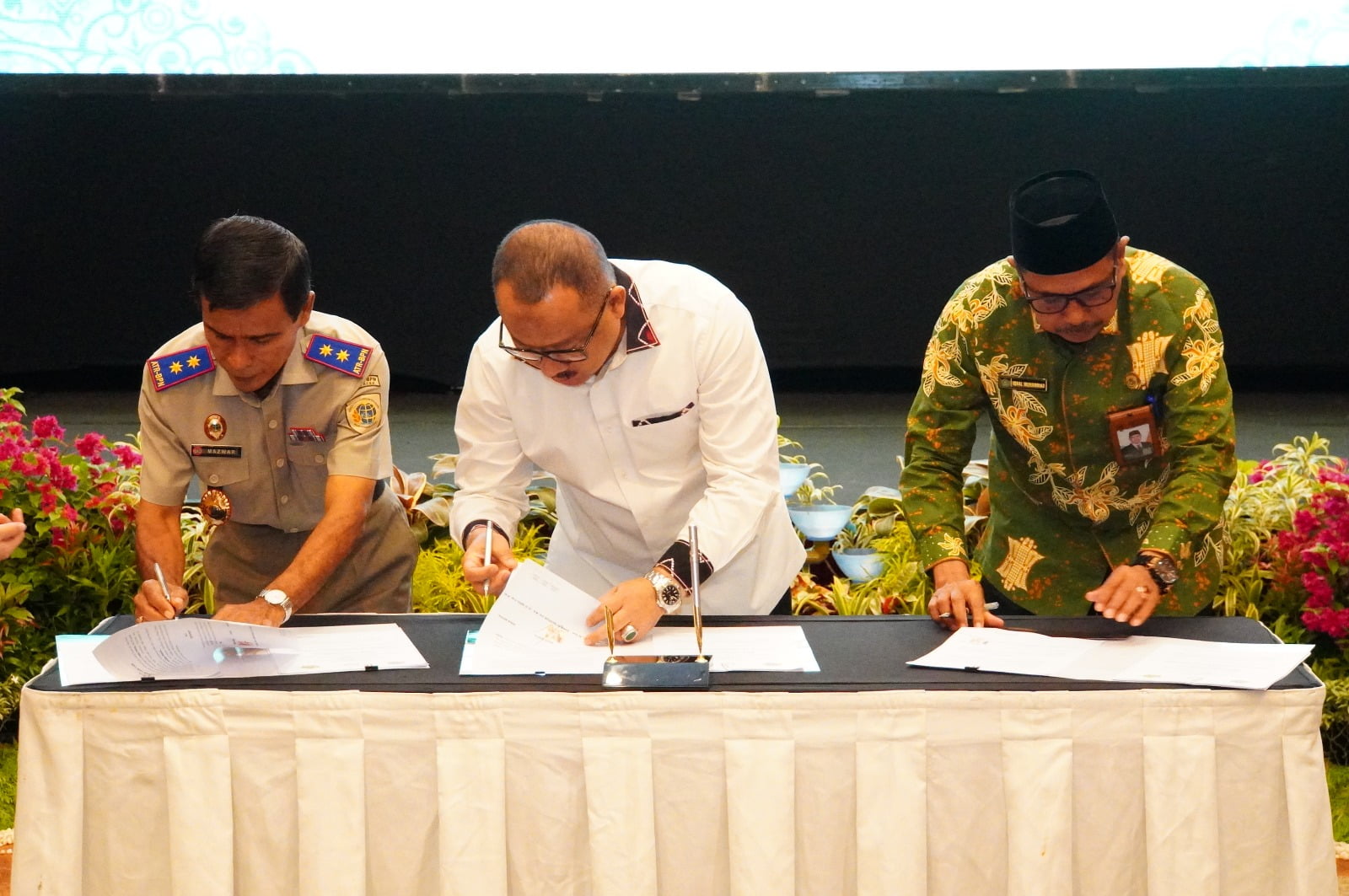 Penandatanganan perjanjian tersebut disaksikan Pejabat dari unsur Pemerintah Provinsi Aceh, Pemerintah Daerah Kabupaten/Kota dan Badan Wakaf Indonesia, di Hotel Hermes Palace Banda Aceh, Rabu (01/2/2023).