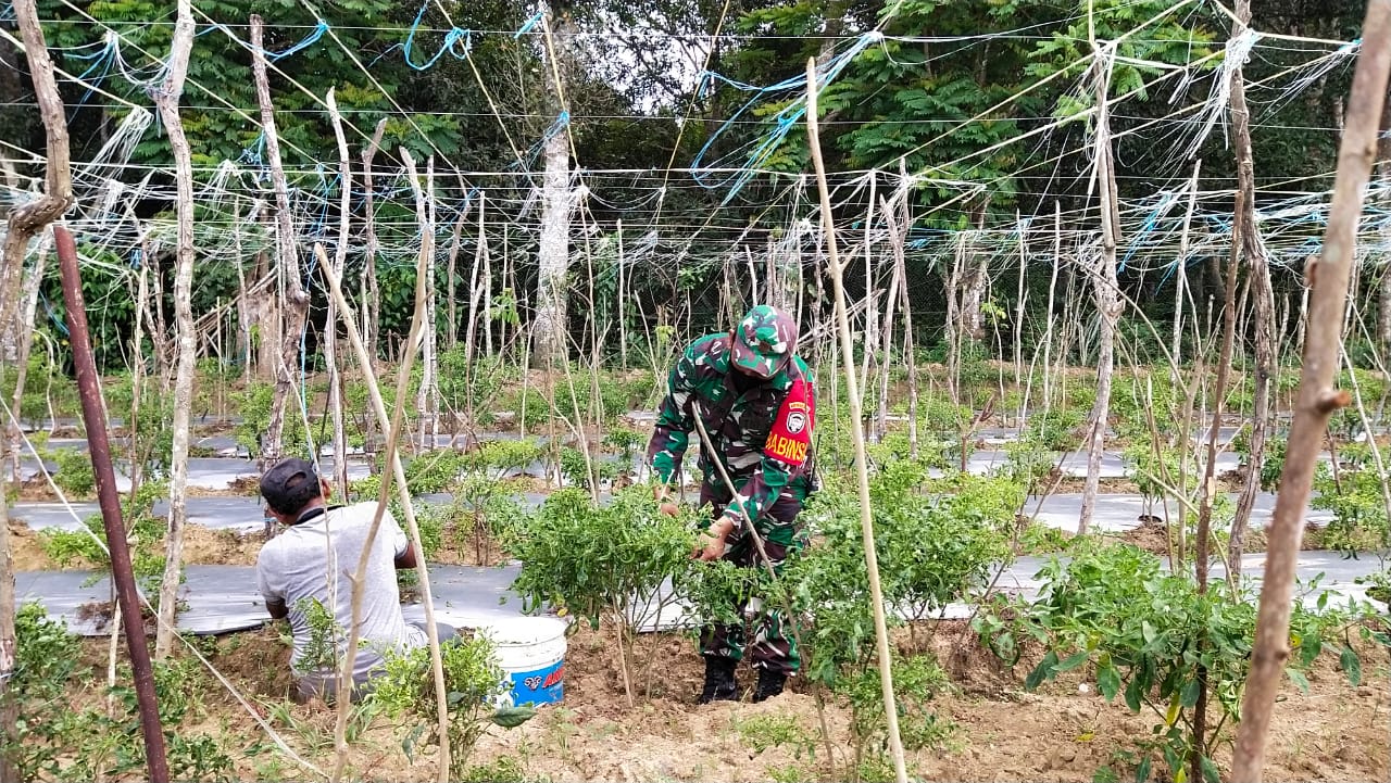 Bintara Pembina Desa (Babinsa) Koramil 08/Kuta Baro, Kodim 0101/BS secara aktif memberikan pendampingan baik kepada petani, Seperti dilakukan oleh Serda Monazar melaksanakan pendampingan perawatan tanaman cabai di kebun milik Sanusi ( 50 thn) Selaku warga binaan Desa Cot Lamme Kecamatan Kuta baro Kabupaten Aceh Besar, Kamis (8/4/2021).