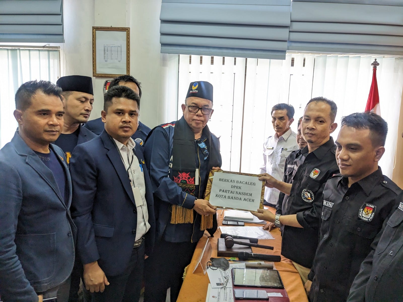 Penyerahan berkas pendaftaran diberikan langsung oleh Ketua DPD NasDem Kota Banda Aceh, H Heri Julius didampingi Sekretaris NasDem Kota Banda Aceh, Daniel Abdul Wahab, dan Bendahara Abdul Ghafur, kepada Ketua KIP Kota Banda Aceh, Indra Milwady.