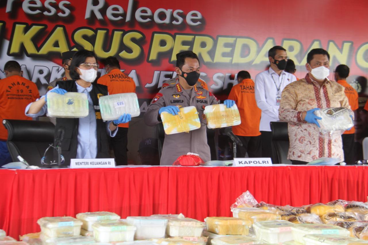 “Kami ungkap kurang lebih 2,5 ton narkoba sabu asal Timur Tengah, Malaysia yang masuk ke Indonesia,” kata Kapolri Jenderal Lystio Sigit Prabowo, dalam jumpa pers di Lapangan Bhayangkara, Rabu (28/4/2021).