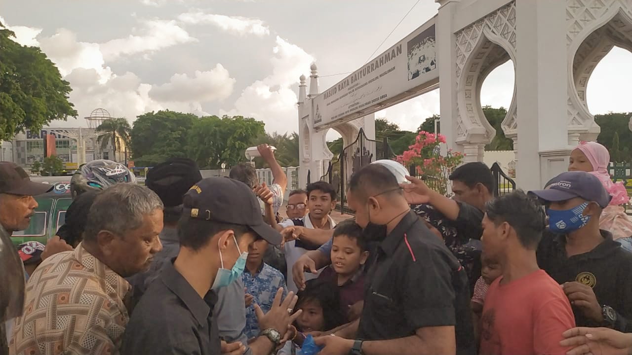 APJN.net – Banda Aceh | Ratusan warga dan abang-abang becak memadati jalan depan Mesjid Raya Baiturrahman Banda Aceh jelang berbuka puasa, Kamis sore (29/4).