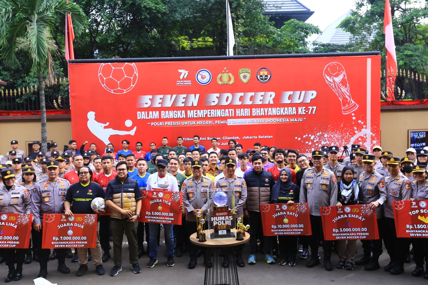APJN.net, JAKARTA |Kepolisian Negara Republik Indonesia (Polri) bersama wartawan yang bertugas meliput di Mabes Polri menggelar Seven Soccer Bhayangkara Presisi Cup 2023 dalam rangka perayaan Hari Bhayangkara ke-77.