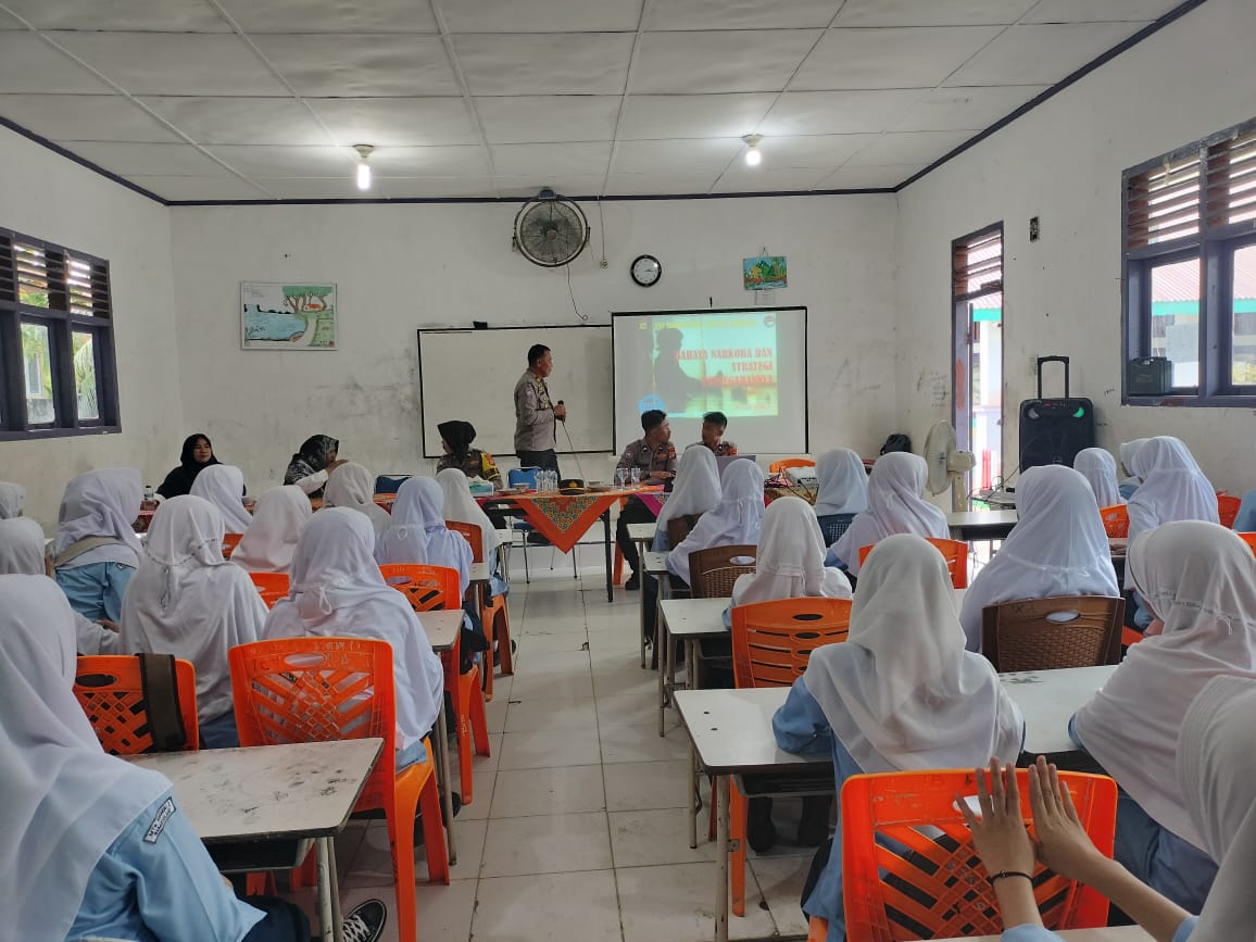 APJN.net, SIMEULUE|Dalam rangka memberikan sosialisasi himbauan tentang bahaya Narkoba dan tertib berlalu lintas, Sat Binmas Polres Simeulue menyambangi MTSN 2 Simeulue Timur, Selasa (18/7/2923).