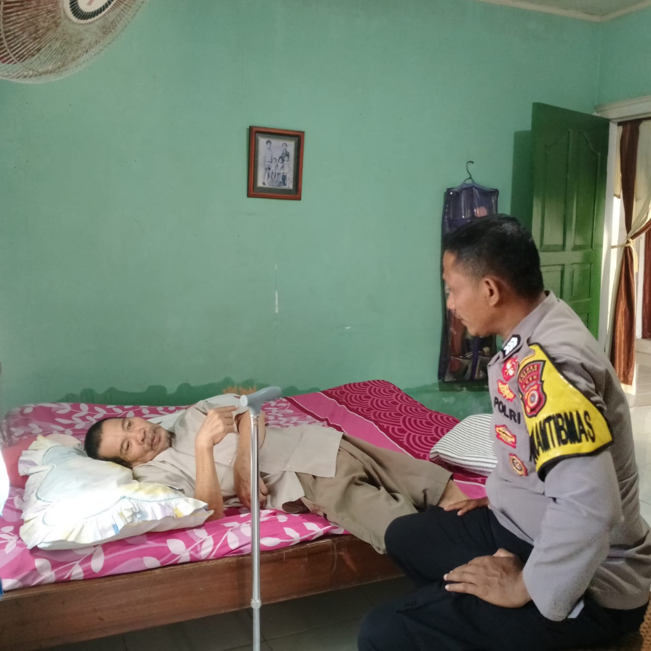 Dalam kunjungannya, Bhabinkamtibmas menyampaikan keprihatinannya atas sakit yang diderita warga di desa binaannya.