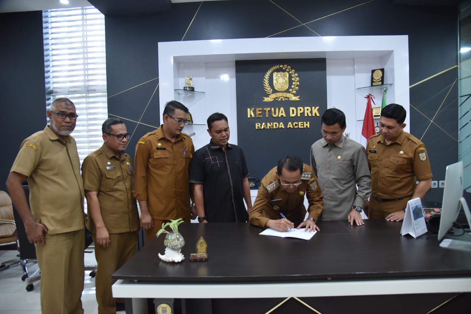 Penandatanganan MoU dilakukan oleh Ketua DPRK Banda Aceh, Farid Nyak Umar dan bersama Pj Walikota, Amiruddin, serta Wakil Ketua II DPRK, Isnaini Husda yang disaksikan oleh Plt Sekda, Wahyudi, dan para pejabat pemko lainnya.