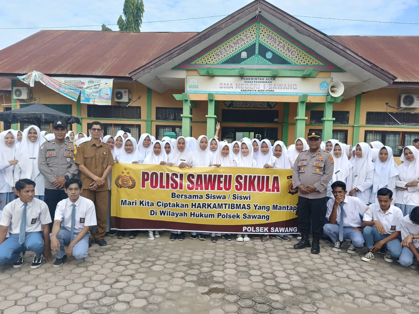 Lanjutnya, kegiatan bertajuk “Saweu Sikula” tersebut, merupakan atensi Kapolres Lhokseumawe, kepada personel dan Polsek jajaran agar menyampaikan pesan Kamtibmas kesetiap sekolah SMA dan SMK. Pesan dimaksud diantaranya, tentang dampak negatif kenakalan remaja dan penyalahgunaan Narkoba.