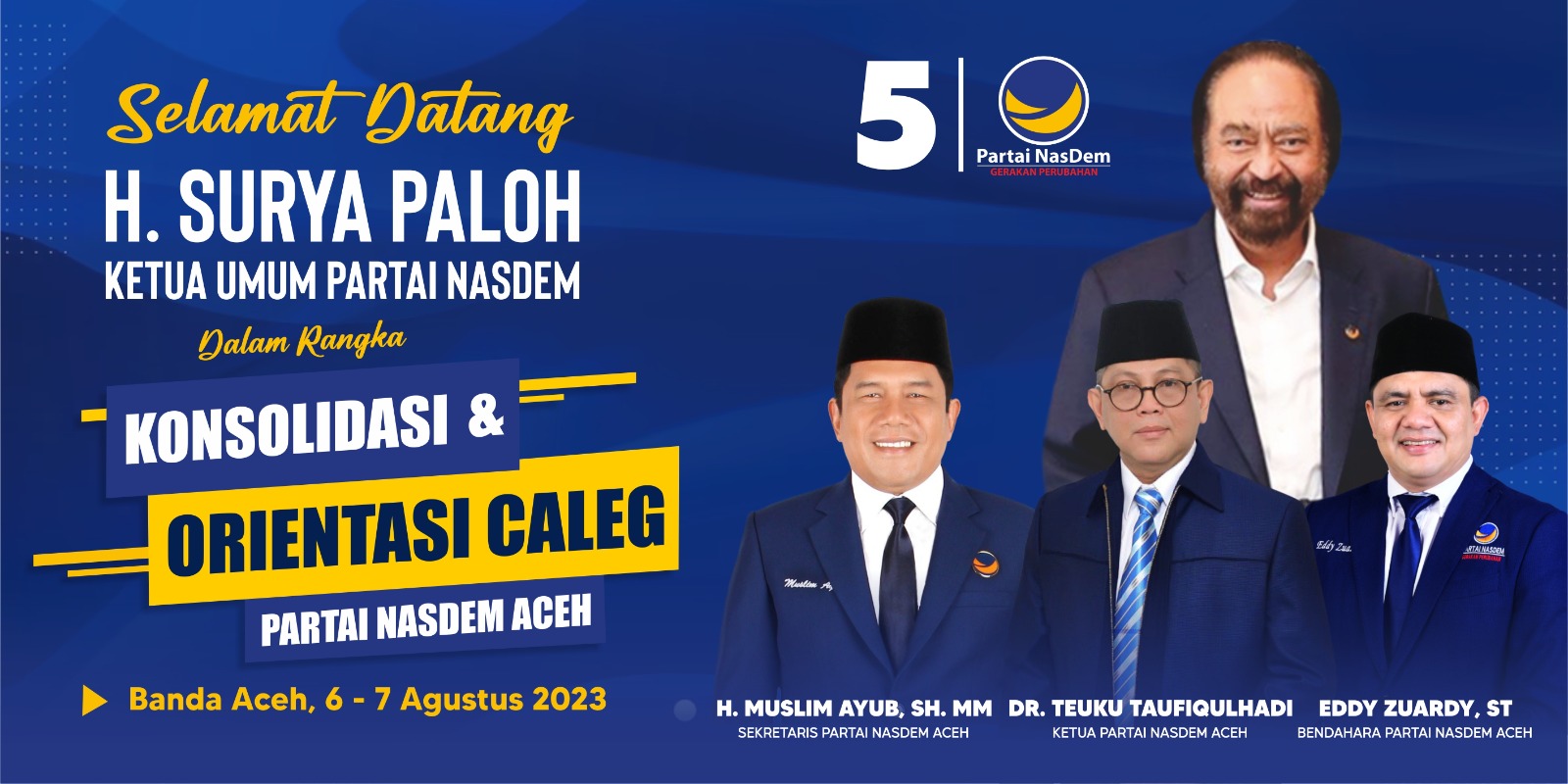 Hal tersebut disampaikan Ketua DPW NasDem Aceh, Taufiqulhadi, dalam keterangan persnya, Sabtu (5/8/2023).