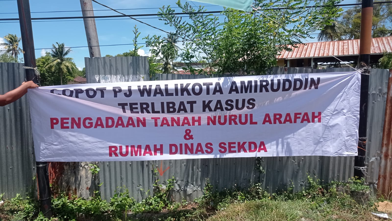 APJN.net|BANDA ACEH| Beredar photo spanduk bertuliskan, “Copot Pj Walikota Amiruddin, diduga Terlibat Kasus pengadaan tanah Nurul Arafah dan rumah dinas Sekda”.