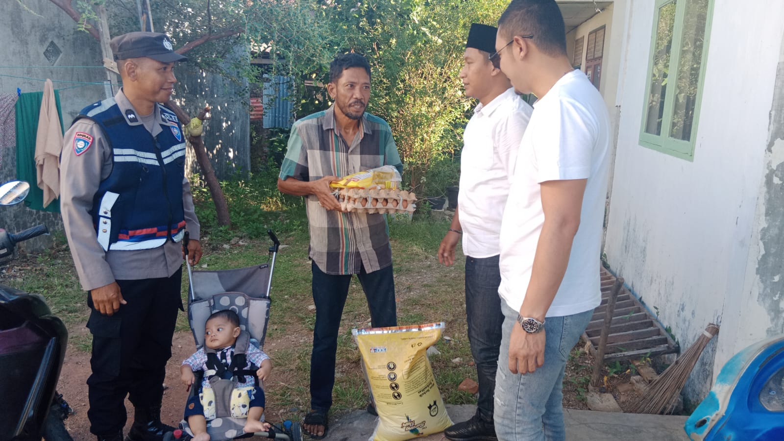 APJN.net|BANDA ACEH| Bhabinkamtibmas Polsek Kuta Alam, memfasilitasi penyaluran bantuan yang diberikan para dermawan terhadap warga yang kurang mampu di Gampong Lamdingin, kecamatan Kuta Alam, Kota Banda Aceh, Senin (11/9/2023).
