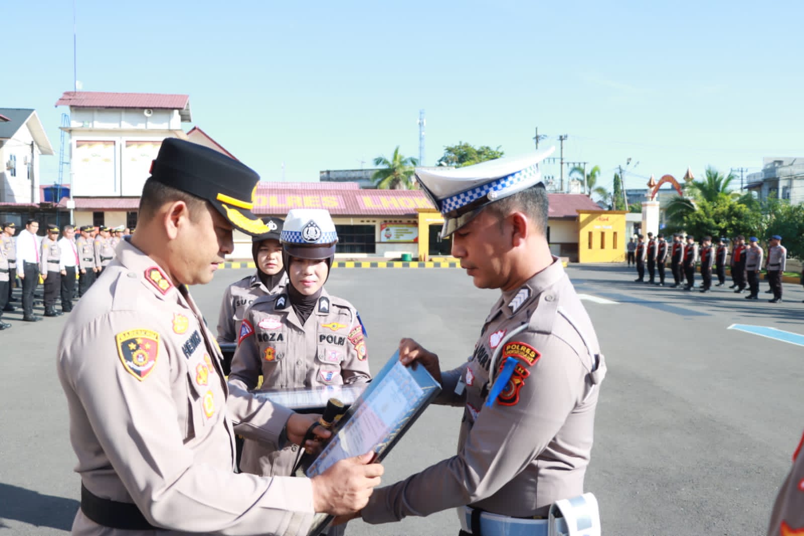 Penyerahan penghargaan tersebut dilakukan Kapolres Lhokseumawe, AKBP Henki Ismanto pada upacara di lapangan apel Satya Haprabu Mapolres Lhokseumawe, Senin (11/9/2023) pagi.