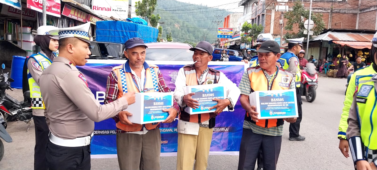 APJN.net|TAKENGON – Dalam rangkaian peringatan Hari Lalu Lintas Bhayangkara ke-68 tahun 2023 dengan tema “Modernisasi Pelayanan Polantas Presisi Mengawal Pemilu Damai untuk Indonesia Maju, mundur Satlantas Polres Aceh Tengah bagikan 173 bingkisan Paket Sembako pada warga masyarakat.