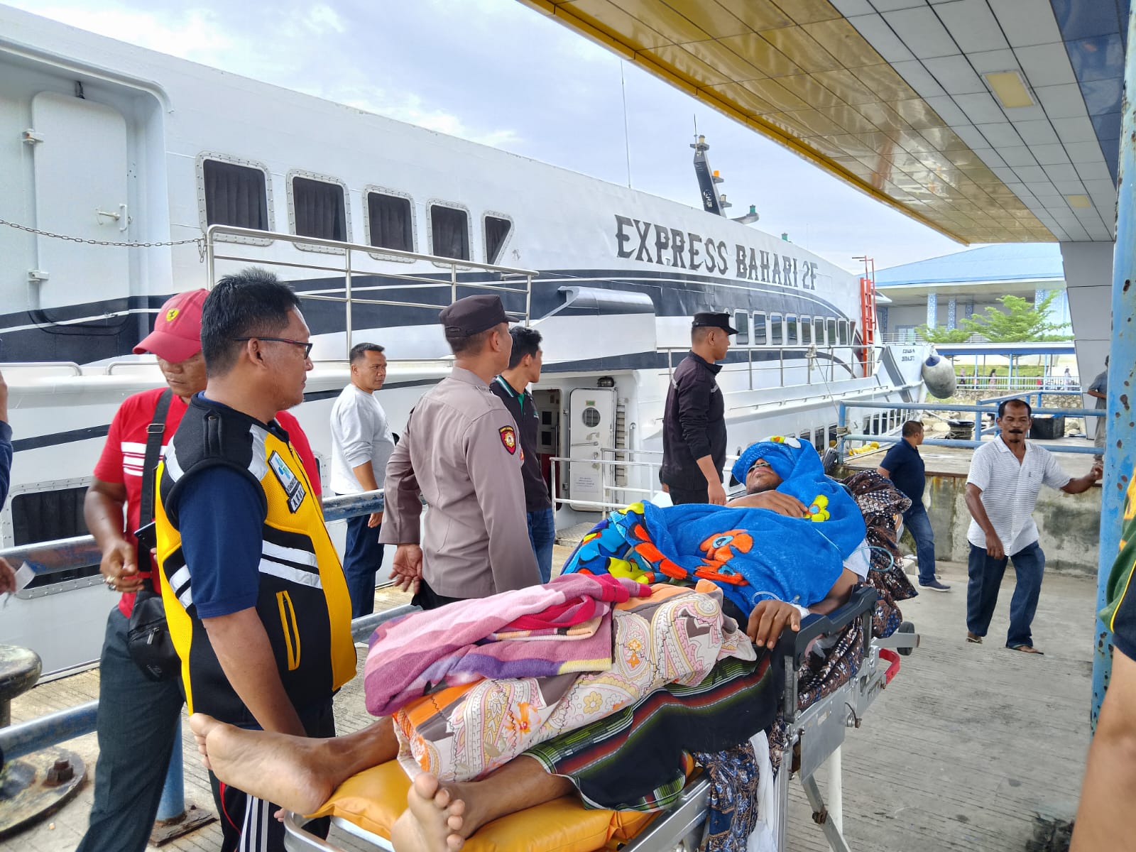 Dalam sebuah aksi yang memperlihatkan kebersamaan dan rasa kemanusiaan, para petugas KPPP membantu pasien memasuki kapal cepat dengan menggunakan kereta dorong, memastikan bahwa pasien dapat segera mendapatkan perawatan yang mereka butuhkan, Sabtu (21/10/2023).