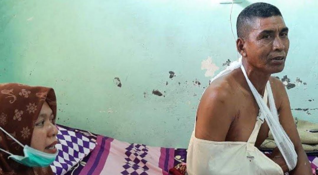 Di ruang bedah rumah sakit pemerintah itu, M Daud dirawat yang ditemani istri bersama anaknya. Tangan kanan masih diperban warna putih.
