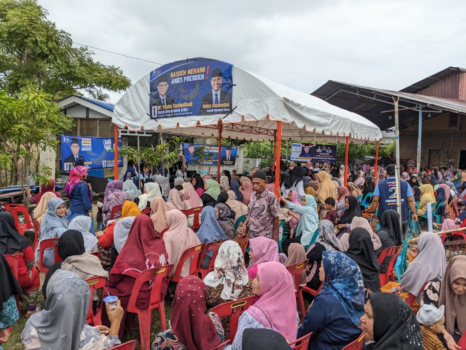 APJN.NET-ACEH BESAR – Ratusan Warga Kecamatan Baitussalam, Kabupaten Aceh Besar, memadati kampanye silaturahmi Caleg DPRA Dapil 1, Nomor Urut 2, H Heri Julius S.Sos, MM, didampingi Caleg DPR RI, Dr Taufiqulhadi MSi, yang juga merupakan Ketua DPW Partai NasDem Aceh, dan Caleg DPRK Banda Aceh Dapil III, Kecamatan Syiah Kuala-Ulee Kareng, Hj Efiati, AMd, di dusun Polayasa, Gampong Kajhu, Selasa (5/12/2023).