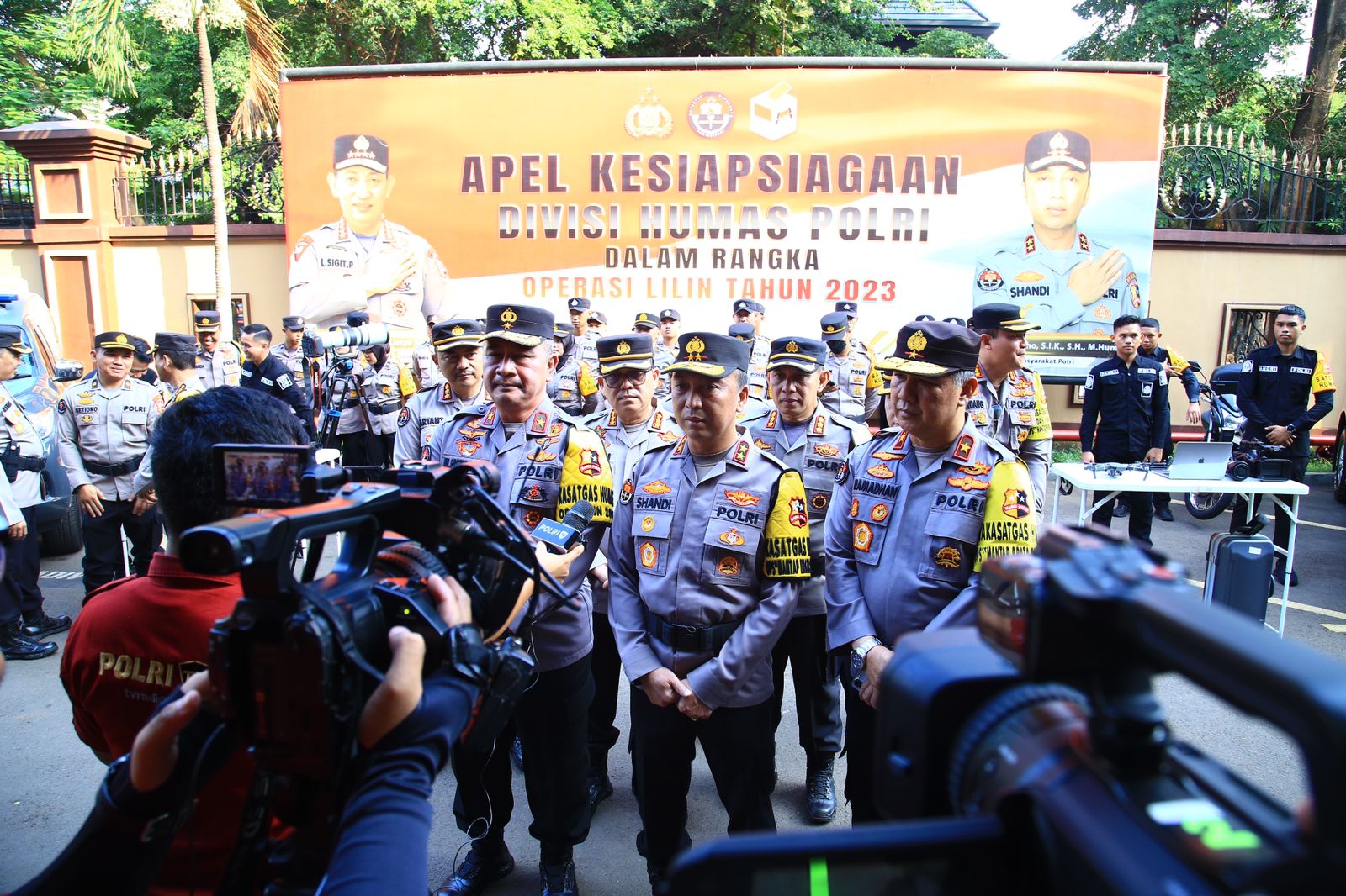 APJN.NET|JAKARTA, Kadiv Humas Polri Irjen Sandi Nugroho memimpin upacara gelar pasukan Kesiapsiagaan Satgas Humas Polri Ops Lilin 2023 dalam rangkap pengamanan Natal dan Tahun Baru (Nataru) 2024.