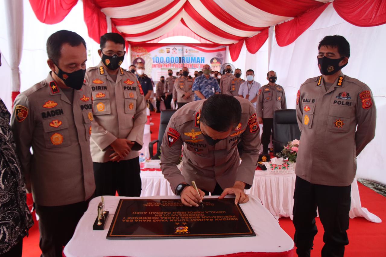 Kabid Humas Polda Aceh Kombes Pol. Winardy, S. H., S. I. K., M. Si, dalam siaran persnya mengatakan, Kapolda meresmikan perumahan untuk PNPP itu dengan menandatangani prasasti di kompleks perumahan Bhara Daksa tersebut.