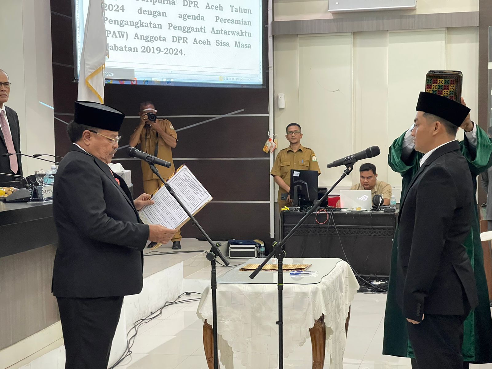 Kemudian itu, Sekretaris DPR Aceh, membacakan keputusan Menteri Dalam Negeri tentang peresmian pemberhentian anggota DPR Aceh dan peresmian pemindahan Pengganti Antarwaktu (PAW) anggota DPR Aceh, Aramiko Aritonang, S.Sos resmi diangkat menjadi anggota DPR Aceh Pengganti Antarwaktu sisa masa jabatan tahun 2019-2024.