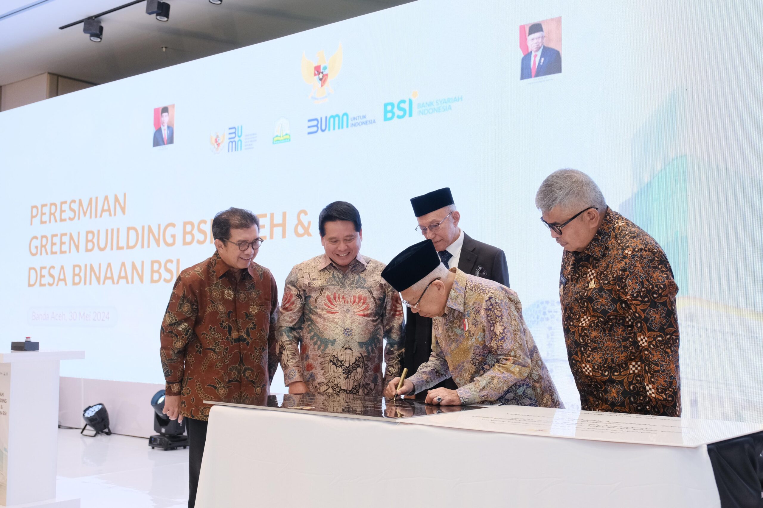 APJN.NET|BANDA ACEH, Wakil Presiden Republik Indonesia KH Ma’ruf Amin meresmikan gedung ramah lingkungan Landmark BSI Aceh yang terletak di Jl Teungku Daud Beureuh No15, Banda Aceh, Kamis (3/5/2024).