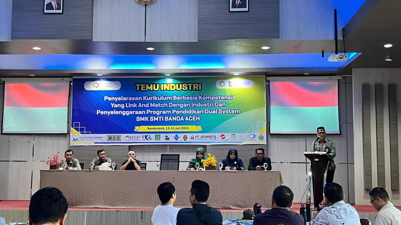 Kegiatan temu industri, penyelarasan kurikulum berbasis kompetensi dan penyelenggaraan program pendidikan dual sistem SMK SMTI Banda Aceh, Tahun 2024, tersebut di buka langsung oleh Kadisperindag Aceh Mohd Tanwir, mewakili Pemerintah Aceh.