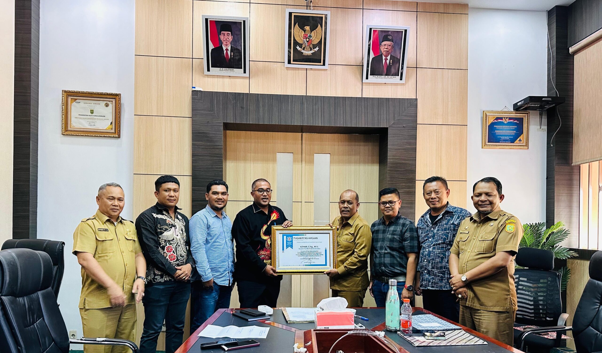 Piagam Penghargaan tersebut, di serahkan langsung Ketua YARA, Safararuddin, kepada Azhari, di ruang kerja Walikota Subulussalam yang turut di dampingi oleh Kepala Bappeda, Zulkifli, Asisten 1 Khainuddin, Kepala dan Sekretaris Perwakilan YARA Subulussalam, Edi Sahputra Bako, Kaya Alim, YARA Perwakilan Banda Aceh, Yuni Eko Hariatna (Haji Embong), Selasa (16/7/2024).