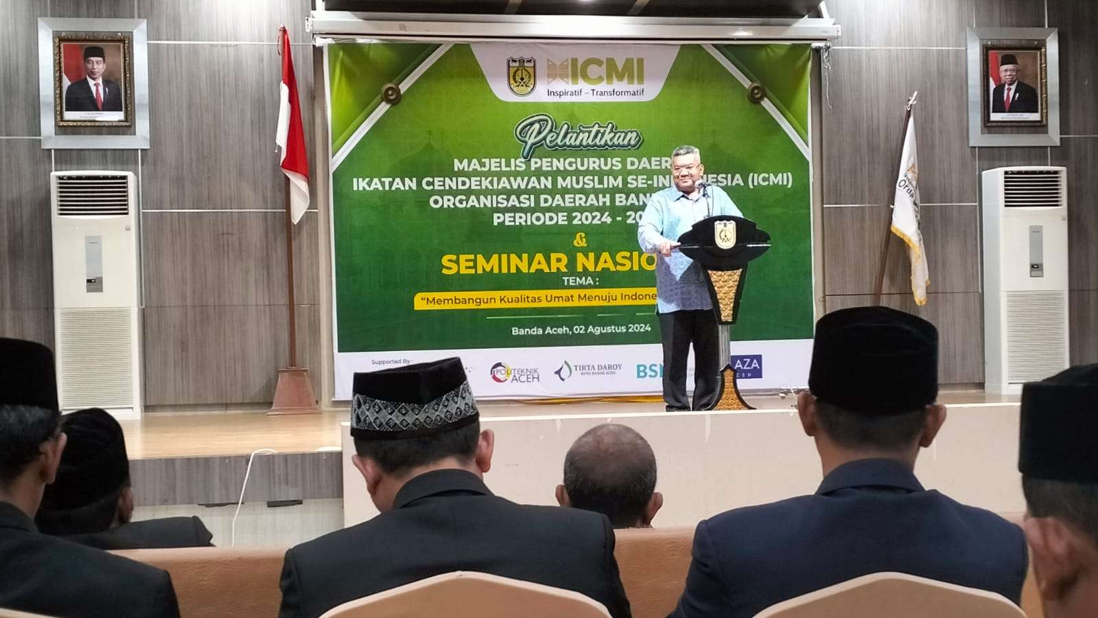 APJN.NET, BANDA ACEH-Ketua Majelis Pengurus Wilayah (MPW) Ikatan Cendikiawan Muslim Indonesia (ICMI) Provinsi Aceh, Dr Taqwaddin Husin melantik Majelis Pengurus Daerah (MPD) ICMI Kota Banda Aceh yang diketuai Iskandar Nurdin MSi, di Gedung Balai Kota Banda Aceh, Lantai IV, Jumat (2/8/2024) malam.
