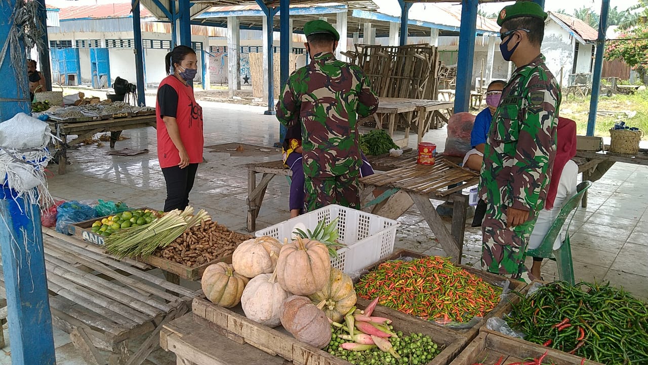 Pasar tradisional itu kini sehari-hari kerap terlihat para tentara berbelanja. Mereka adalah para personel Satgas TMMD. Sebelum berangkat ke lokasi sasaran fisik, para personel Satgas TMMD itu memang selalu berbelanja kebutuhan sehari-hari para prajurit yang tinggal di tempat keluarga asuh.