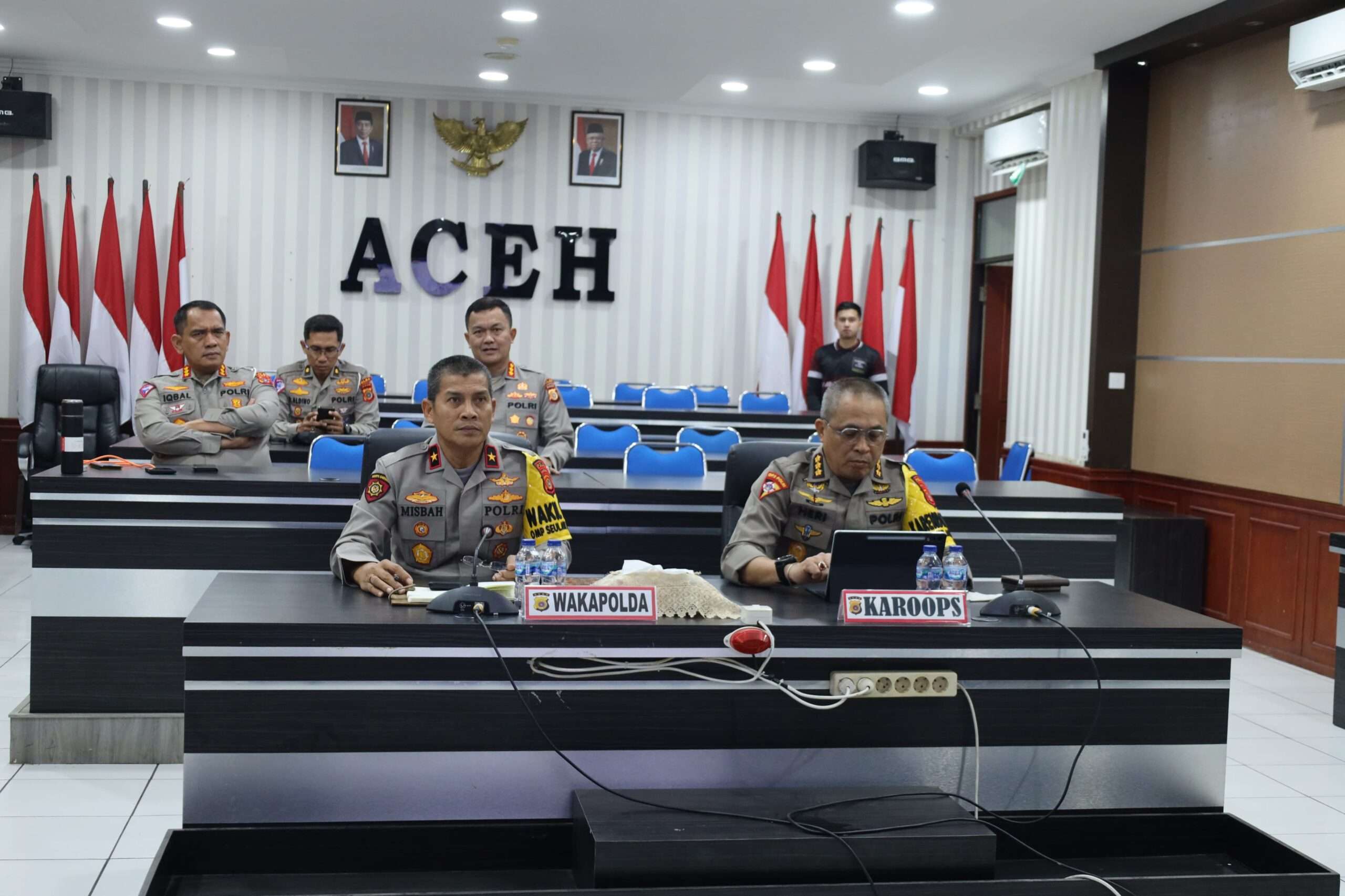 APJN.NET, BANDA ACEH –Wakapolda Aceh Brigjen Pol. Misbahul Munawar SH, mengikuti rakor yang berlangsung secara virtual dipimpin Mendagri RI Muhammad Tito Karnavian dari Jakarta, pada Jum’at (30/8/2024) pagi.
