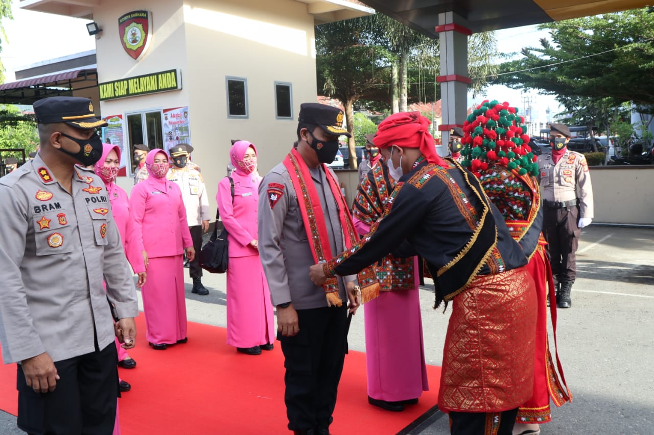 Lebih lanjut Kapolda Aceh dan Ketua PD Bhayangkari Aceh Ny. Winta Wahyu dilakukan pengalungan bunga sekira pukul 08.00 wib.