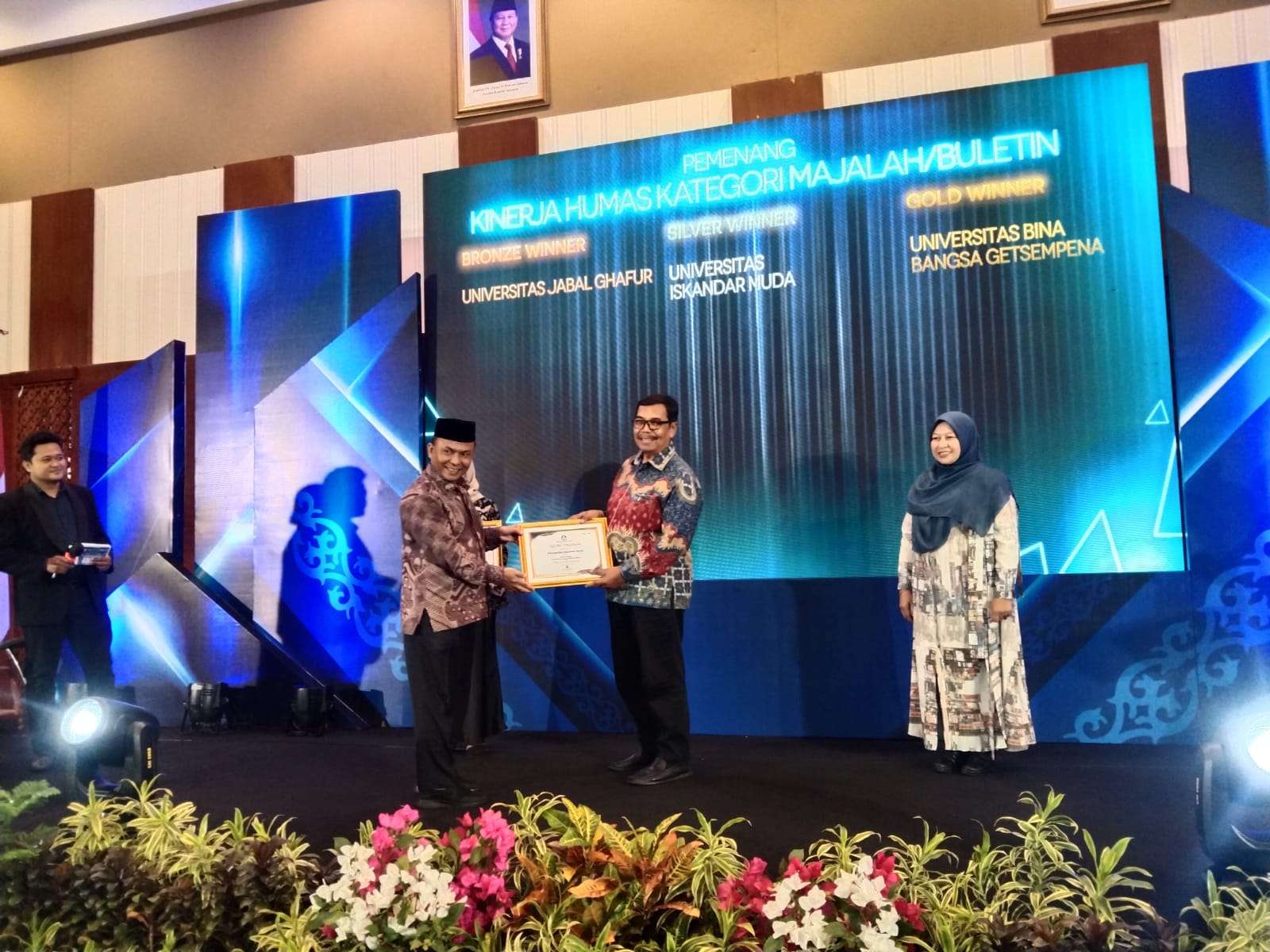 Rakor yang dirangkaikan dengan malam penyerahan Award untuk PTS di Aceh, Unida juga menerima Kinerja terbaik Sistem Penjaminan Mutu Internal (SPMI) di level Bronze Wenner.