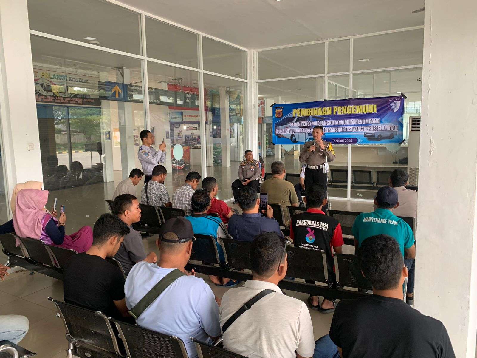 BANDA ACEH, Kasubdit Kamsel Ditlantas Polda Aceh AKBP M Nuzir S Sos MSi, menggelar pembinaan pengemudi dan pasang spanduk di Terminal Batoh, Banda Aceh, Kamis (13/2/2025).