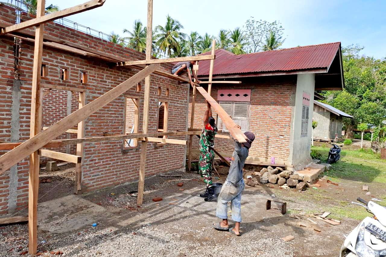 ACEH BESAR, Sosok TNI yang dekat dengan masyarakat kembali terlihat di Kabupaten Aceh Besar. Seperti dilakukan oleh Babinsa Gampong Lambaro Tunong, Sertu Ikhwanudin, Koramil 24/Lembah Seulawah, Kodim 0101/Kota Banda Aceh yang menunjukkan kepeduliannya dengan terlibat langsung dalam pembangunan rumah milik Bapak Amirullah, salah seorang warga Gampong Lambaro Tunong, Kecamatan Lembah Seulawah, Kabupaten Aceh Besar.