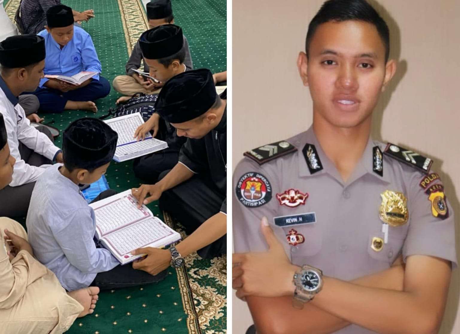 Di tengah kesibukannya sebagai anggota Polri, Briptu Kevin tetap meluangkan waktunya untuk hal-hal positif, salah satunya adalah mengajar anak-anak mengaji di Masjid Raya Baiturrahman Banda Aceh.