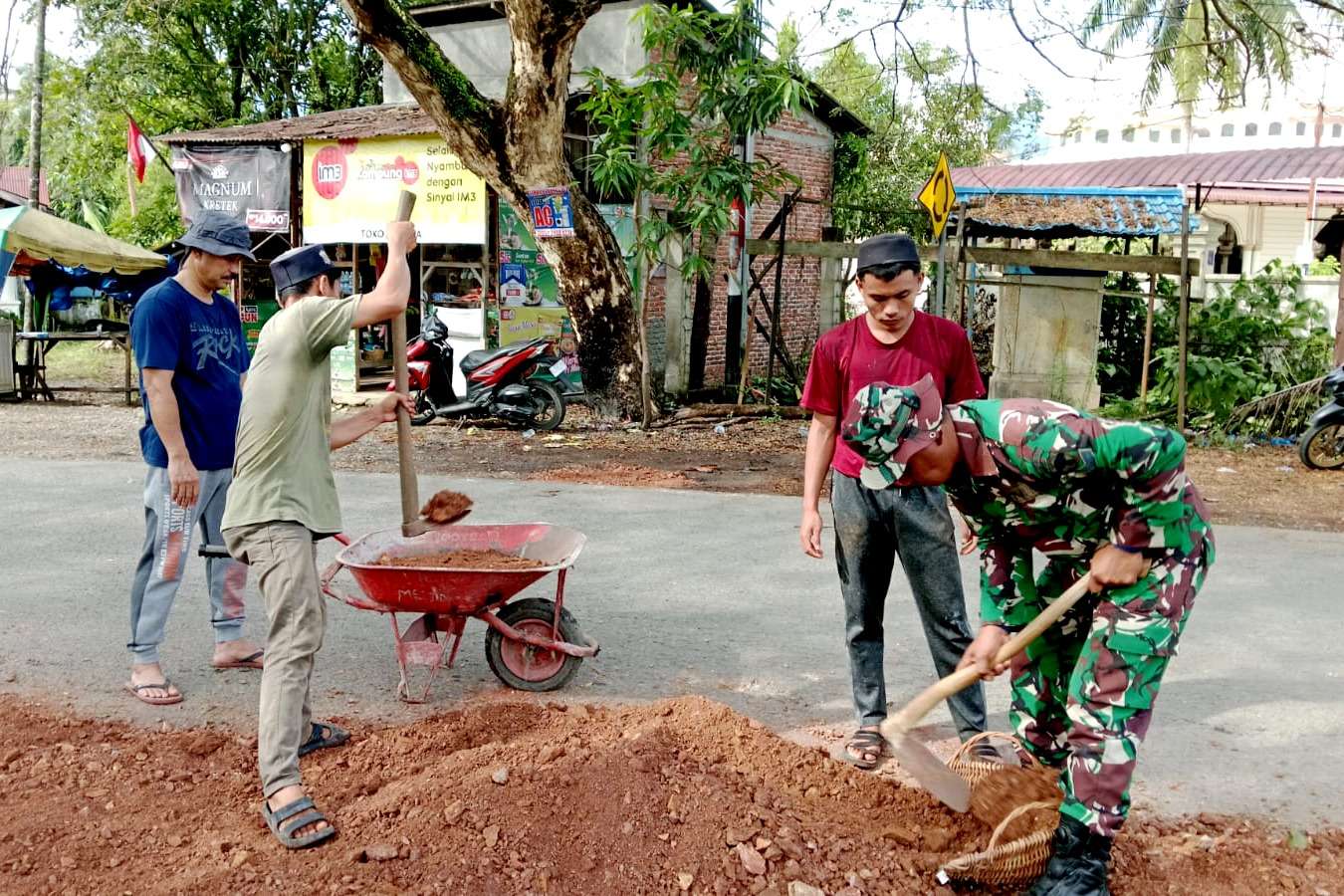 Bersama beberapa warga binaannya, Sertu Muandik, dengan semangat penuh, tampak sibuk membersihkan tumpukan tanah yang menutupi sebagian jalan desa, akibat pekerjaan yang belum selesai, sehingga sempat mengganggu kelancaran lalu lintas di wilayah tersebut.