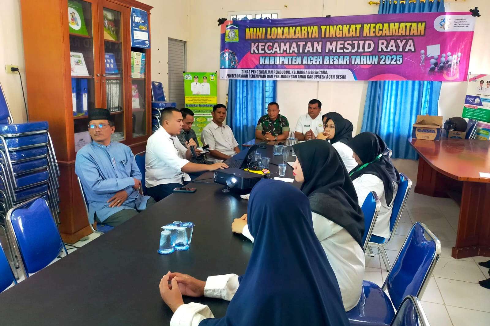 ACEH BESAR, Pelda Rusydi, Bati Tuud Koramil 05/Mesjid Raya, mewakili Danramil 05/Mesjid Raya, Mayor Inf Haryono, menghadiri kegiatan Lokakarya Kecamatan Mesjid Raya, di Aula Balai KB Kecamatan setempat, Rabu (16/4/2025).
