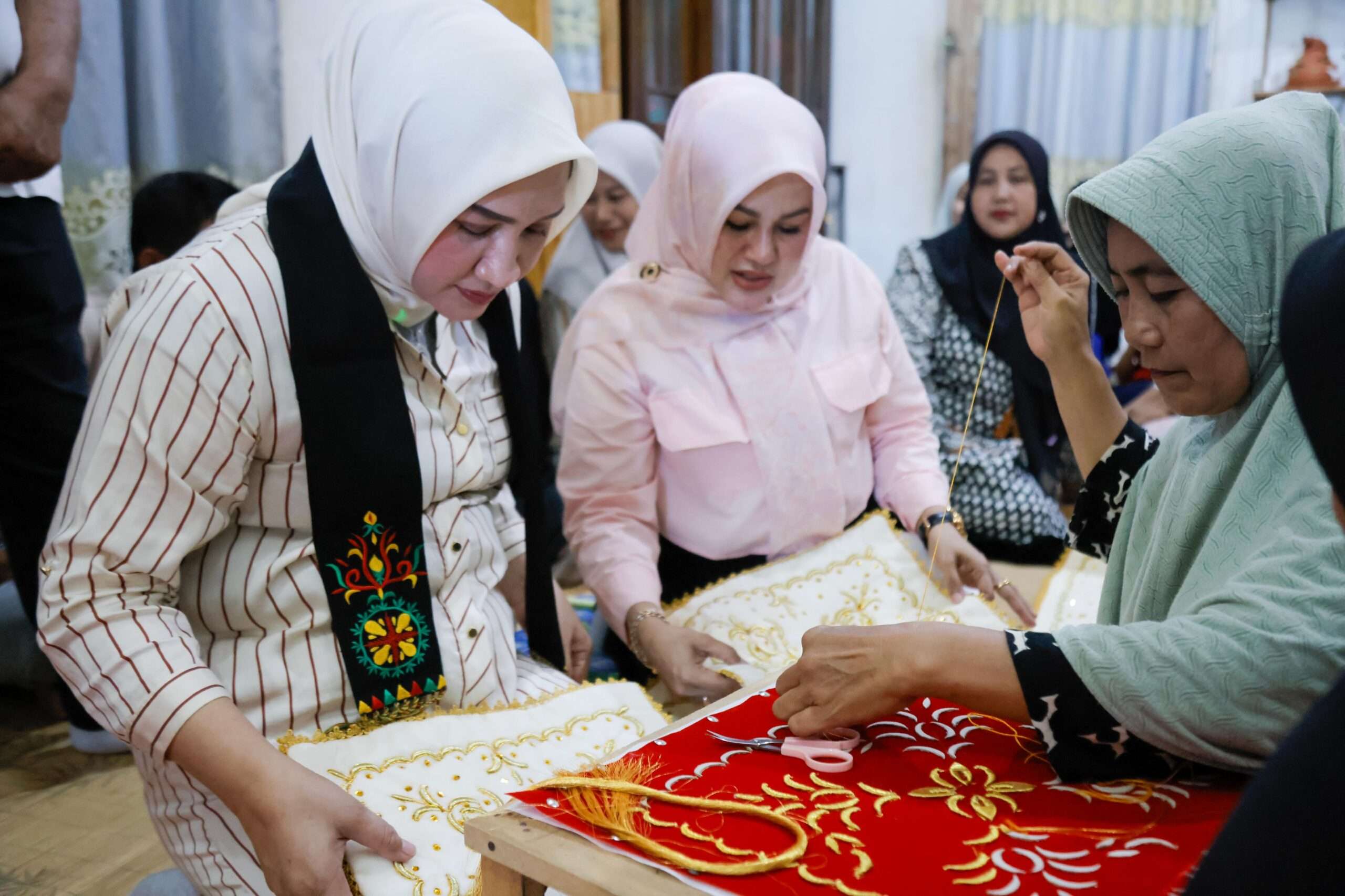 Dalam kunjungannya, Marlina didampingi Ketua Dekranasda Kabupaten Pidie, Rohana Razali dan Kadis Koperasi dan UKM Aceh, Azhari.