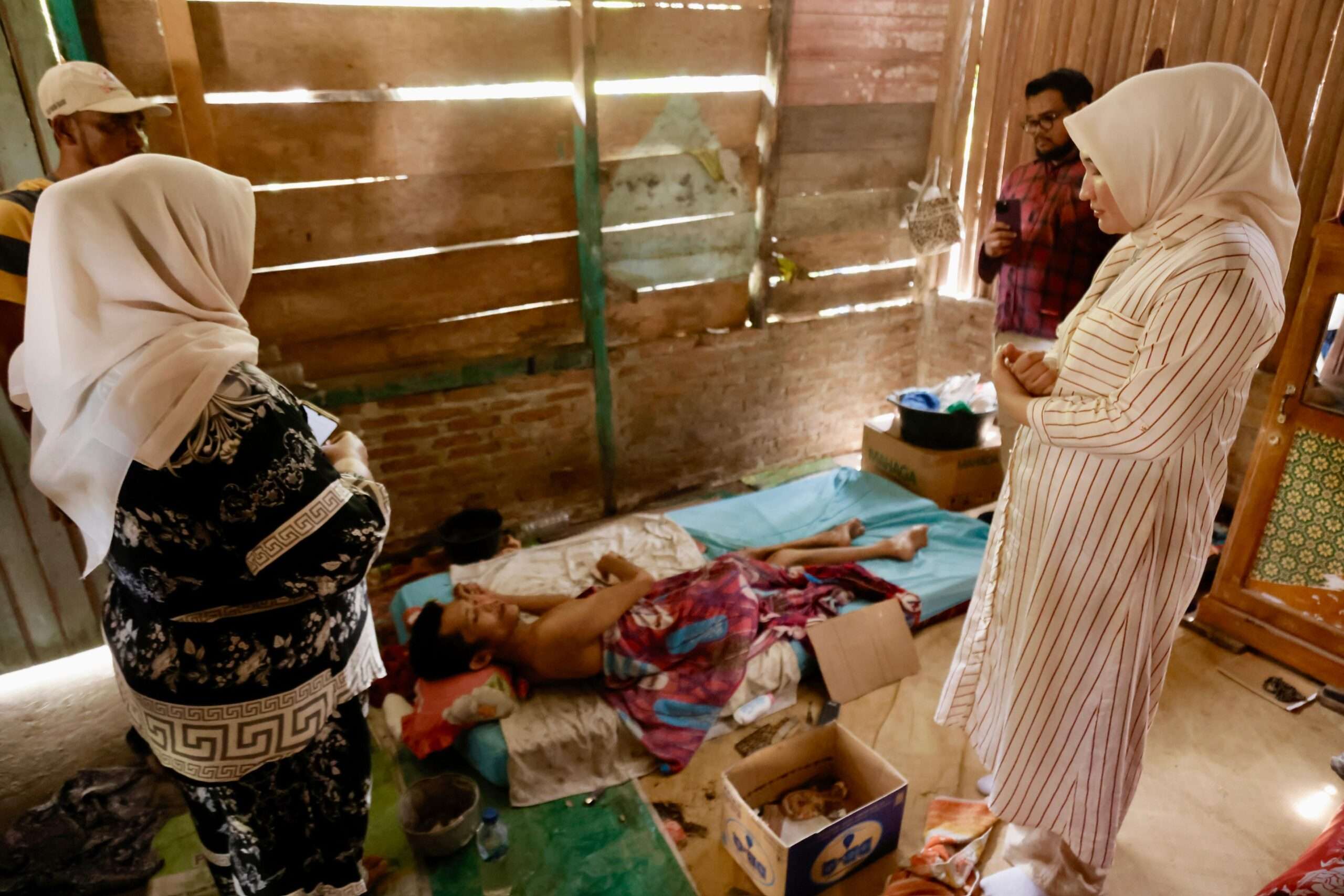Salah satu yang dijenguk adalah Kamaruddin (27), seorang pemuda yang sejak 1,5 tahun terakhir hanya bisa terbaring lemah di atas kasur. Awalnya, Kamaruddin didiagnosis menderita tumor otak. Setelah menjalani operasi, ia kehilangan kemampuan untuk bangun, berbicara, bahkan melihat. Kini, ia tinggal bersama ibunya, Rusnadi, di sebuah rumah Aceh tua yang miring hampir roboh.