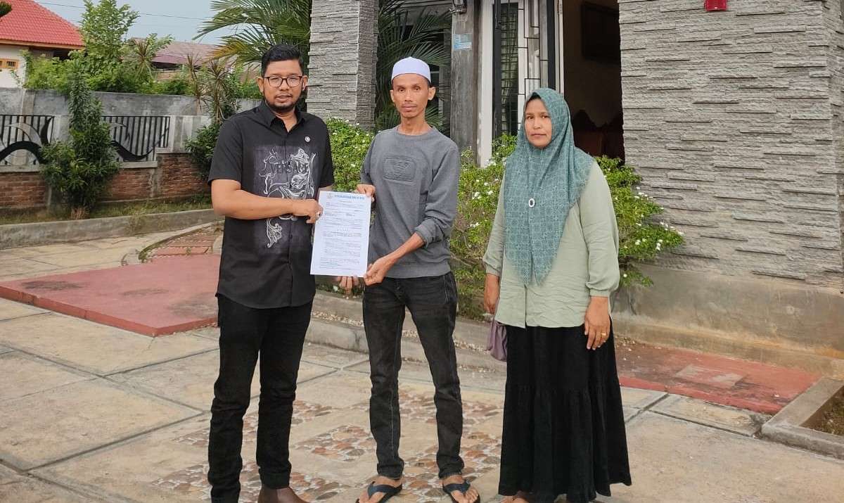 Faisal, ayah almarhum Anis Maula, didampingi oleh istri anaknya dan keluarga besar lainnya, mendatangi Kantor YARA di Banda Aceh untuk menandatangani Surat Kuasa Khusus.