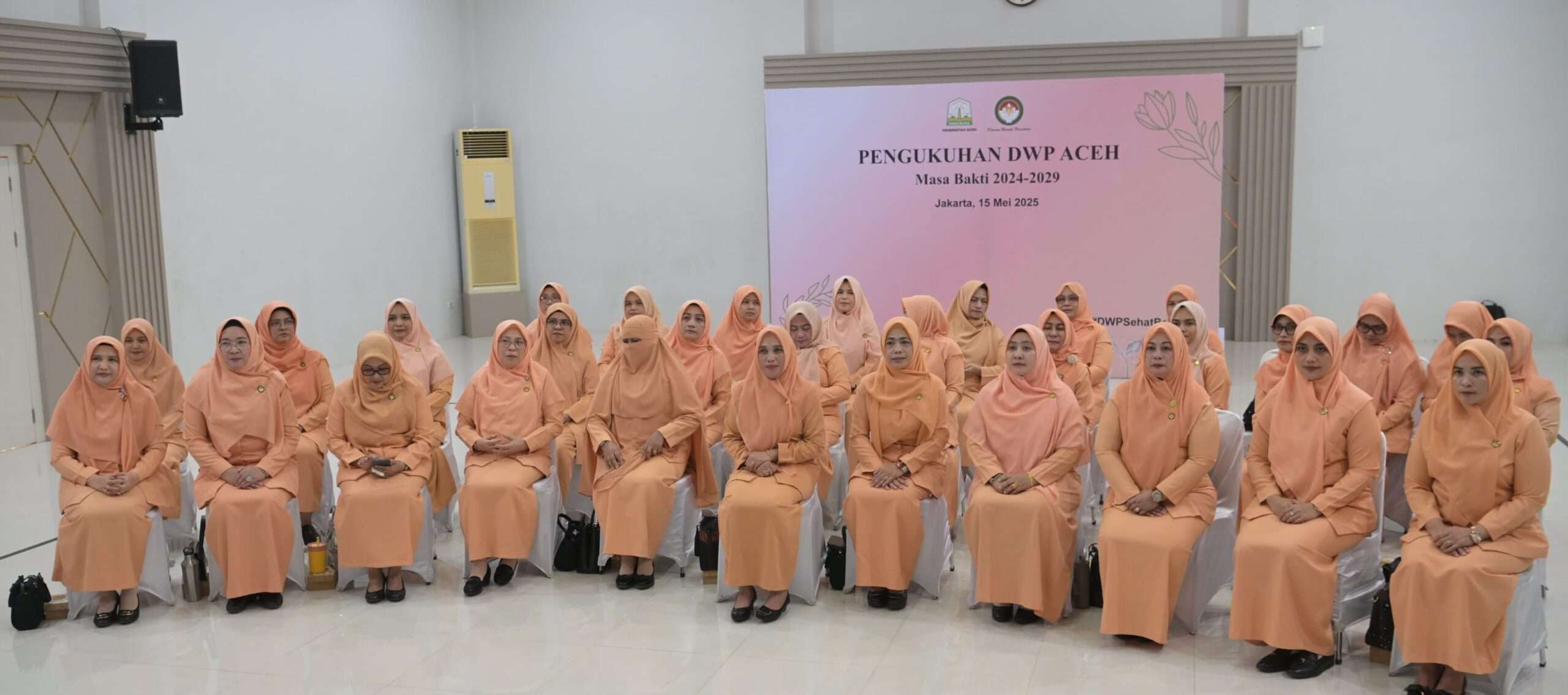 Untuk diketahui bersama, pengurus DWP Aceh masa bhakti 2025–2029 dikukuhkab serentak bersama 38 pengurus DWP Provinsi seluruh Indonesia.