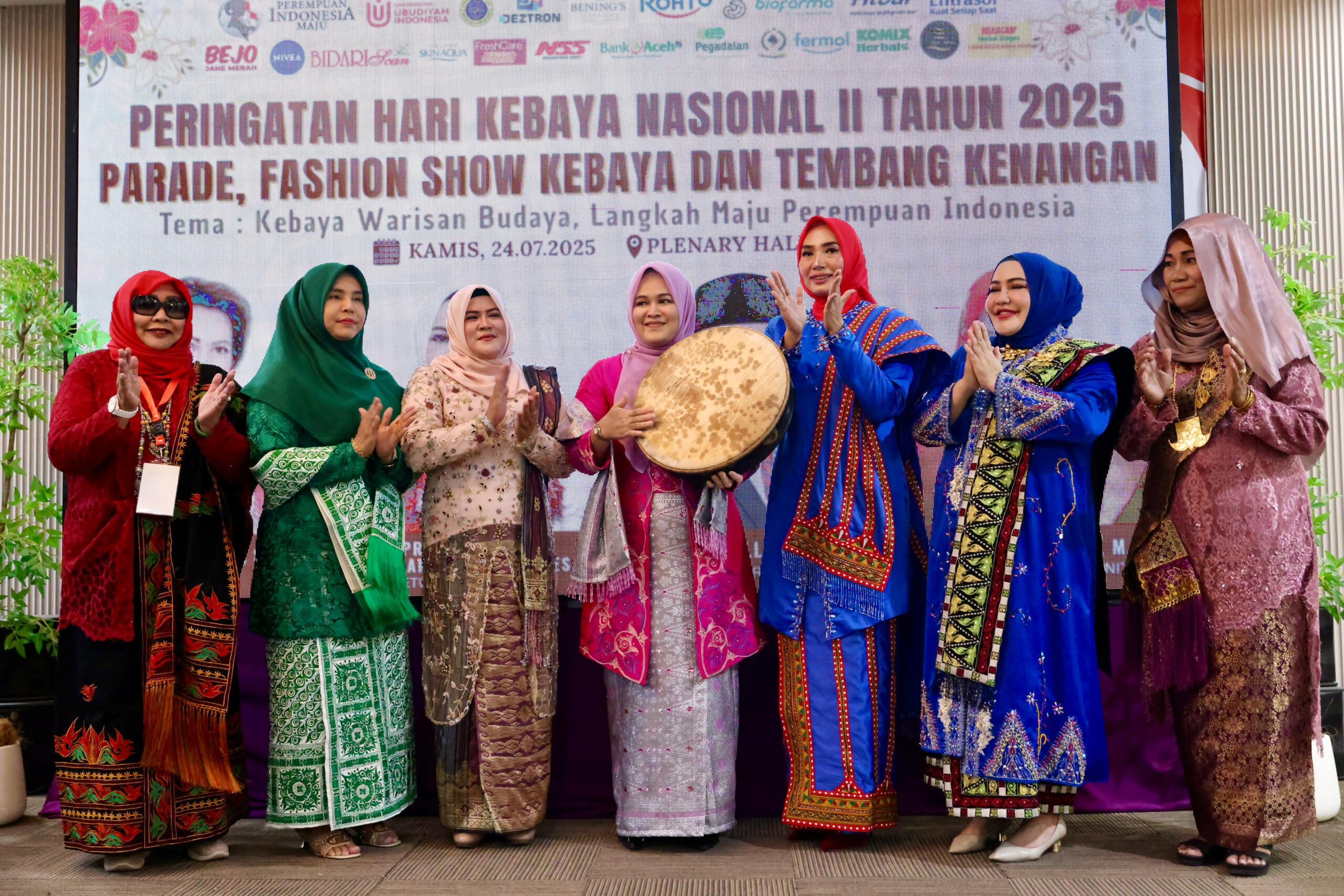 Acara dibuka dengan penabuhan rapa’i oleh Ny. Mukarramah Fadhlullah sebagai tanda dimulainya kegiatan. Mengusung tema “Kebaya Warisan Budaya, Langkah Maju Perempuan Indonesia,” Mukarramah menyampaikan bahwa peringatan Hari Kebaya Nasional ke-2 ini adalah momen penting untuk memperkuat identitas budaya serta mendorong peran perempuan dalam melestarikan aset budaya Indonesia.