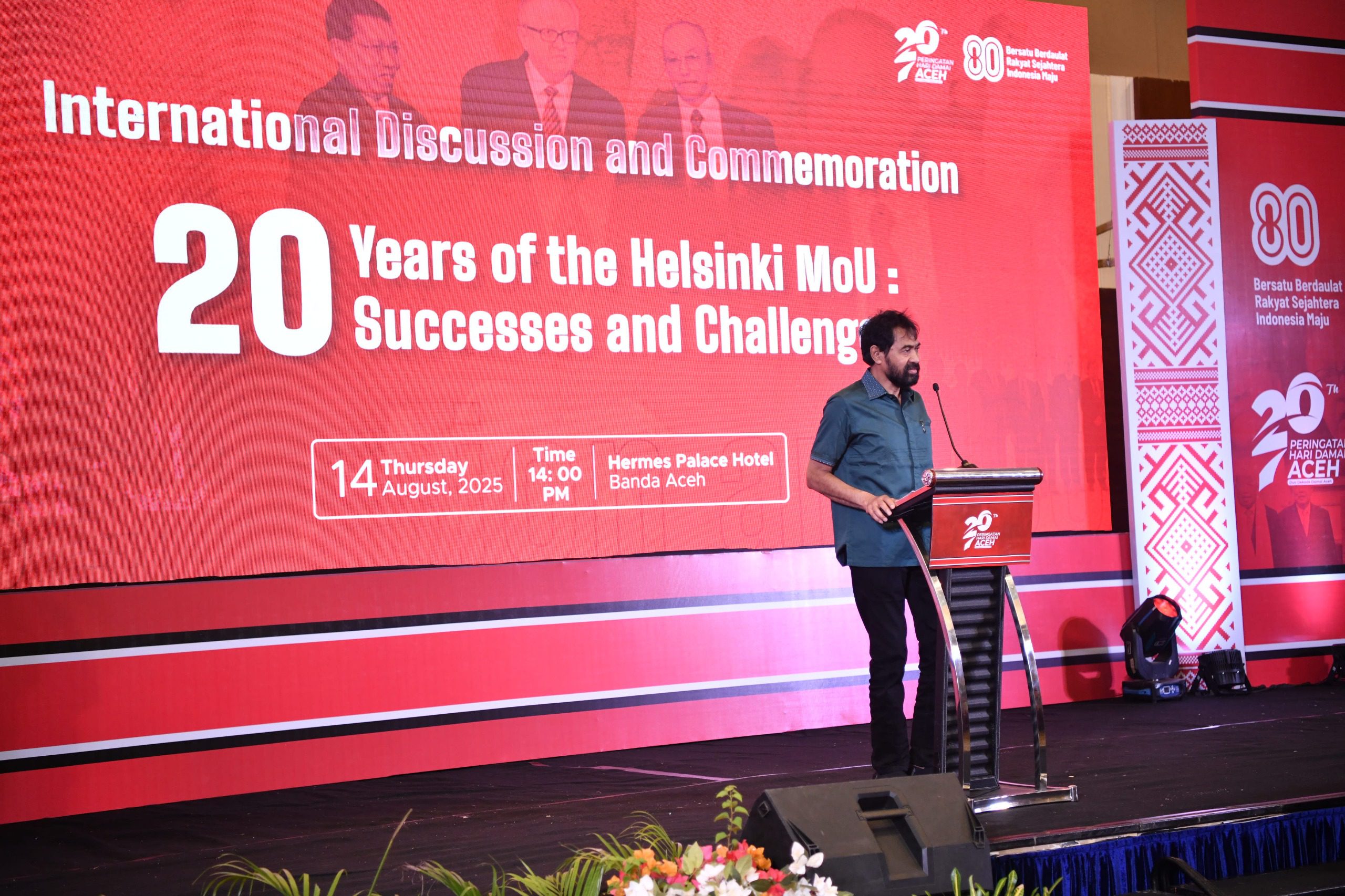 Diskusi bertajuk “20 Years of Helsinski MoU: Successes and Challenges” tersebut dihadiri oleh Wali Nanggroe Aceh, perwakilan Crisis Management Initiative (CMI), Ketua Badan Reintegrasi Aceh, para duta besar, bupati/wali kota, serta kalangan akademisi dan aktivis pegiat sejarah perdamaian.