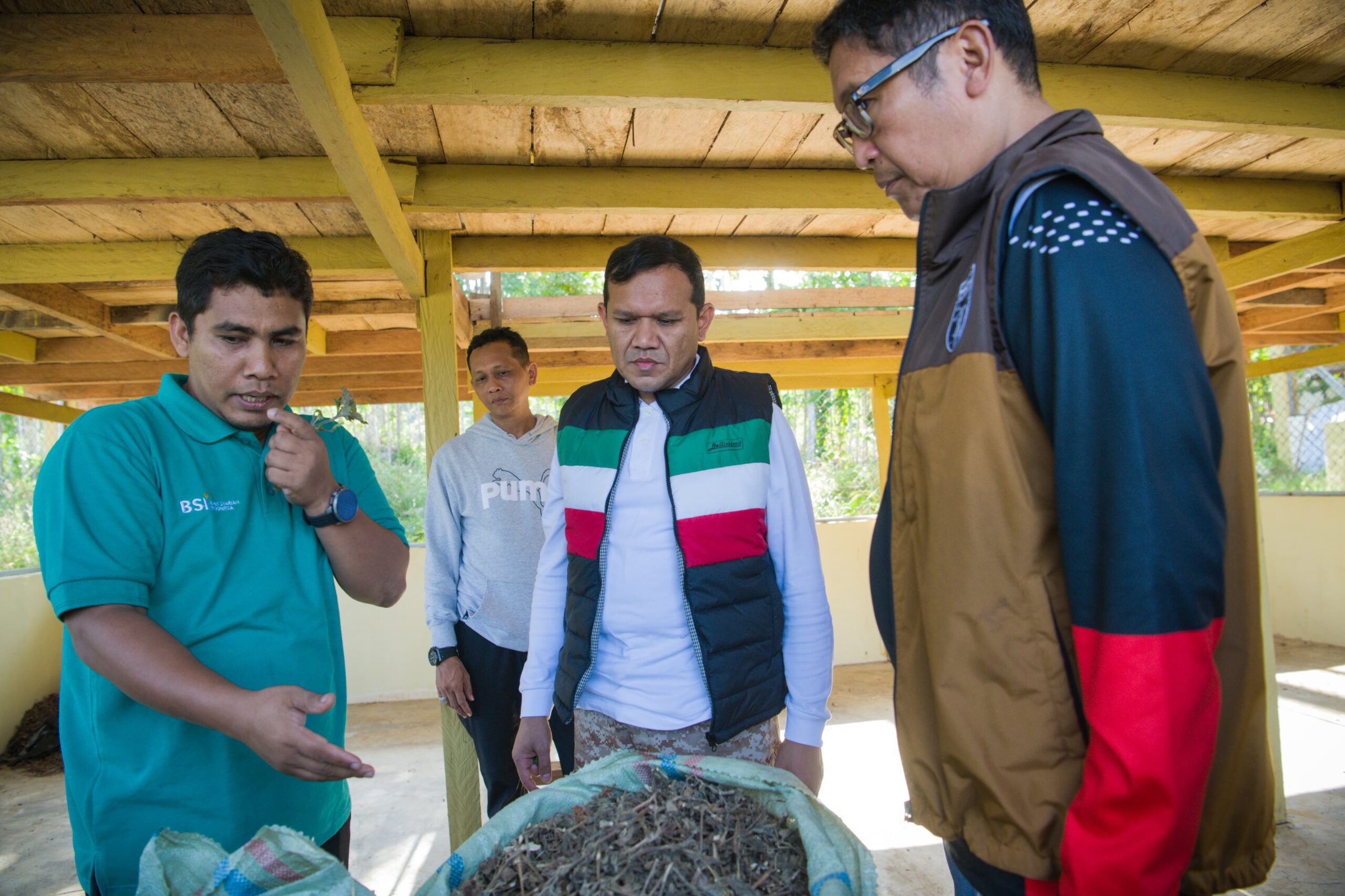 Dalam perjalanan, rombongan singgah di Gampong Umong Seuribee, Kecamatan Lhoong, Kabupaten Aceh Besar, untuk mengunjungi lokasi budidaya tanaman nilam milik kelompok Nilam Lhoong Aceh Sejahtera (Nilas) yang dibina oleh Bank Syariah Indonesia (BSI).