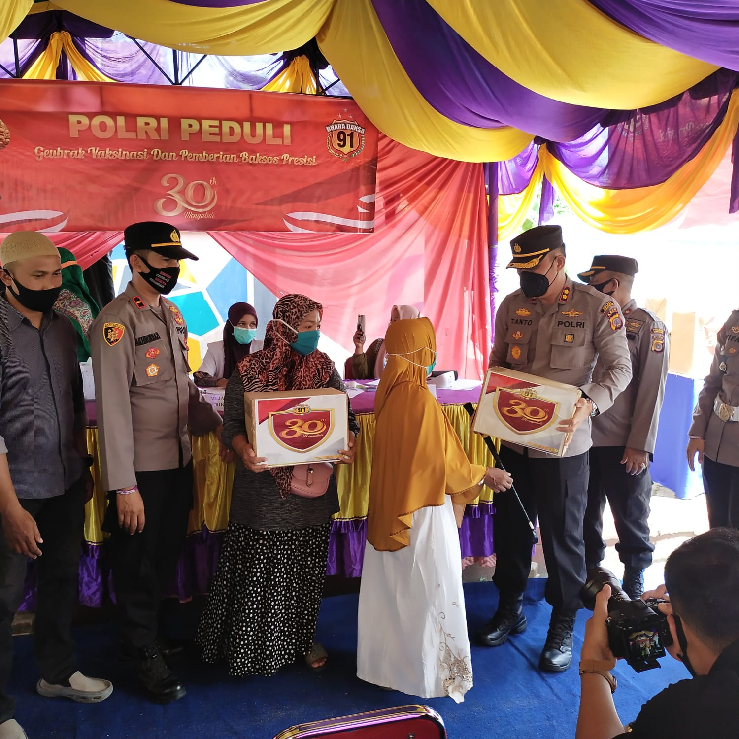” Ada jajaran Polres yang menggelar kegiatan vaksinasi massal dan baksos dalam rangka program Polri peduli gebrak vaksinasi dan pemberian baksos presisi 30 tahun mengabdi Batalyon Bhara Daksa Akpol Angkatan 1991, ” ujar Kabid Humas.