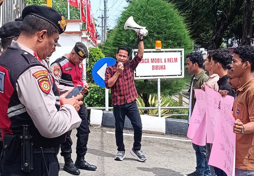 BANDA ACEH, Dewan Pimpinan Pusat Barisan Intelektual Muda Tanah Rencong (DPP BEM-TR) melakukan aksi unjuk rasa di Kejaksaan Tinggi Aceh terkait penolakan keras terhadap jaksa yang bermasalah di Sumatera Utara di pindah ke Aceh. Rabu (22/10/2025).