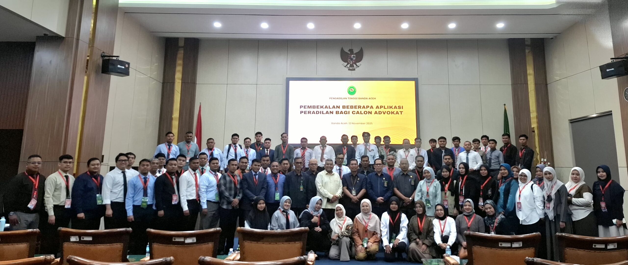 BANDA ACEH – Pengadilan Tinggi Banda Aceh bertempat di Aula PT BNA memberikan pembekalan Aplikasi Peradilan kepada 71 orang Calon Advokat, Rabu (12/11/2025).