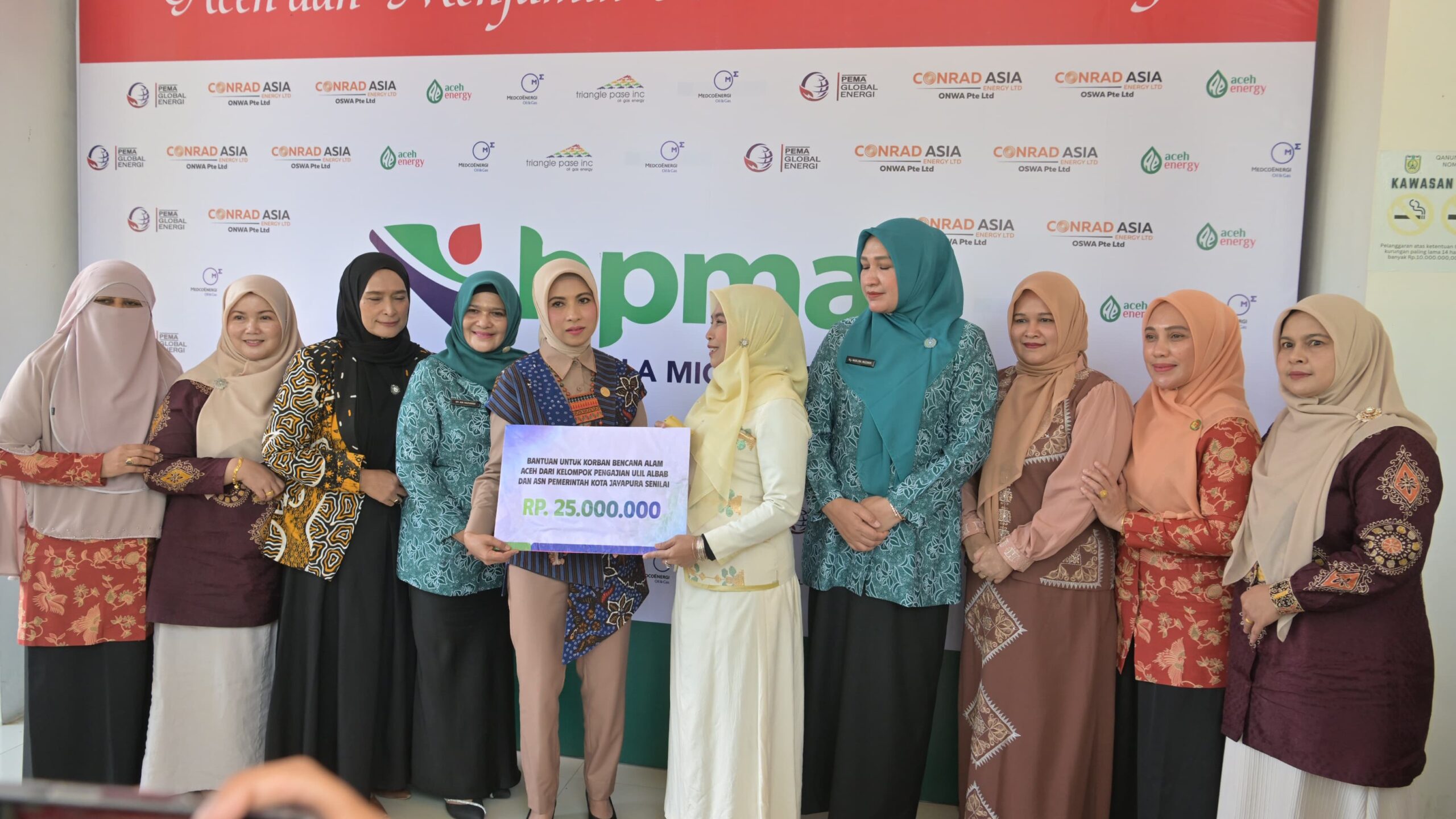 BANDA ACEH – Ketua TP PKK Aceh, Marlina Muzakir, didampingi Ketua Staf Ahli TP PKK Aceh, Mukarramah Fadhlullah, serta Ketua Dharma Wanita Persatuan (DWP) Aceh, Malahayati M. Nasir, menghadiri agenda penyerahan bantuan dari Solidaritas Perempuan Indonesia (Seruni) Kabinet Merah Putih bagi masyarakat terdampak bencana di Provinsi Aceh yang berlangsung di Kantor Badan Pengelola Migas Aceh (BPMA), Rabu (11/2/2026).