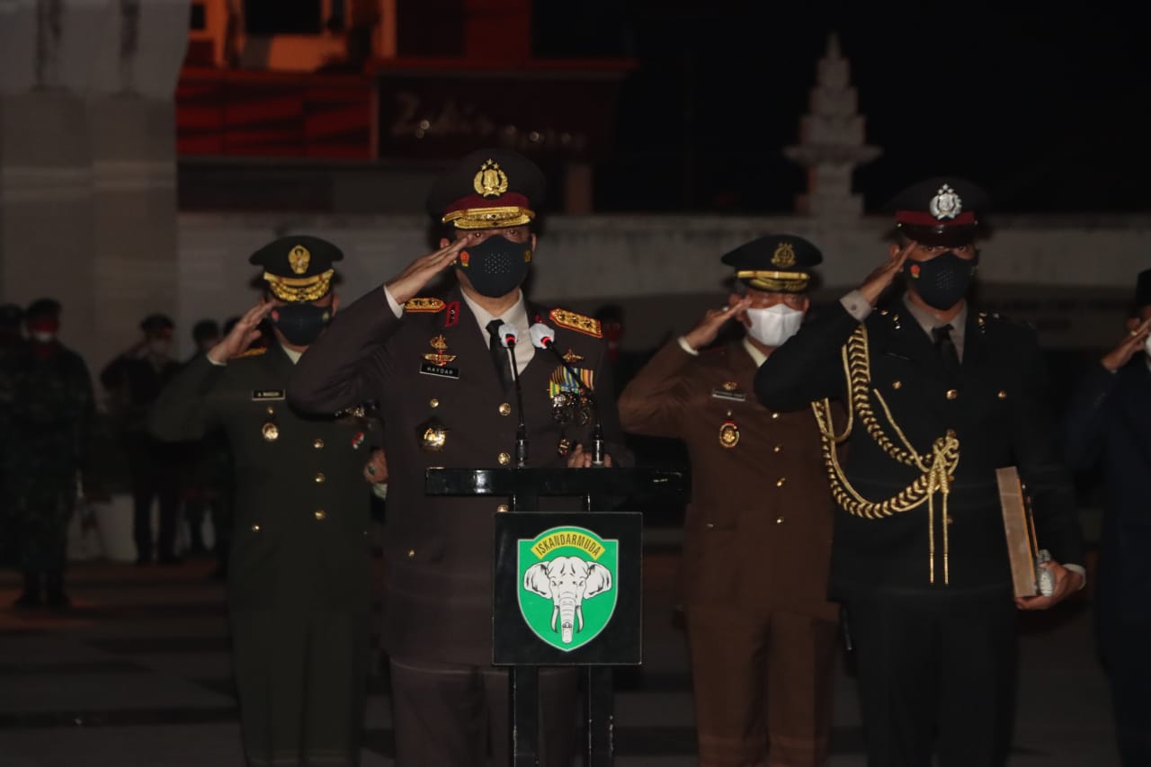 Apel yang digelar pada Sabtu (16/8/21) tengah malam tepatnya pada pukul 00.00 wib itu juga dihadiri Gubernur Aceh Ir. Nova Iriansyah, M. T, Pangdam IM Mayjen TNI Ahmad Marzuki, Kajati, dan Ketua DPRA, sambung Kabid Humas.
