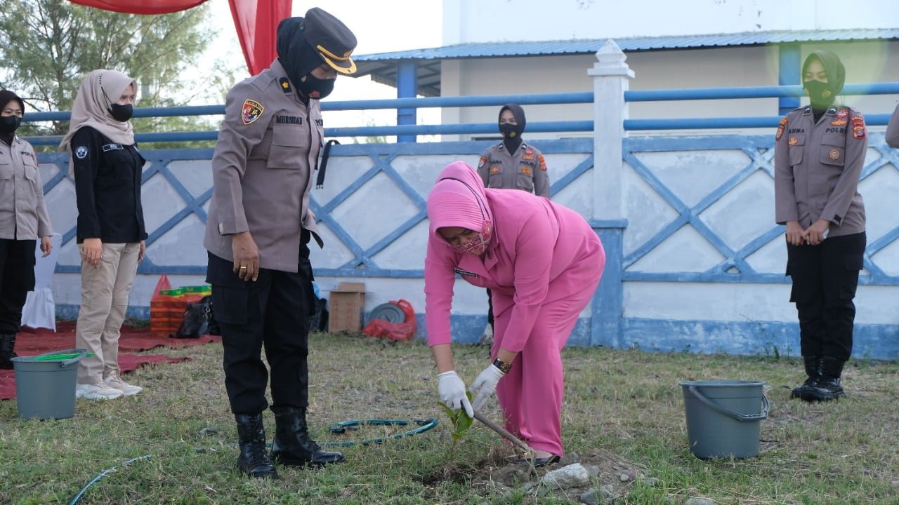 apjn.net -Banda Aceh – Polwan Polda Aceh dan PD. Bhayangkari Aceh menanami sebanyak 110 bibit pohon diantaranya 50 bibit pohon ditanam di sepanjang jalan depan Gudang Beku Terintegrasi PPS Lampulo dekat TPI Banda Aceh, Jum’at (27/8/21).