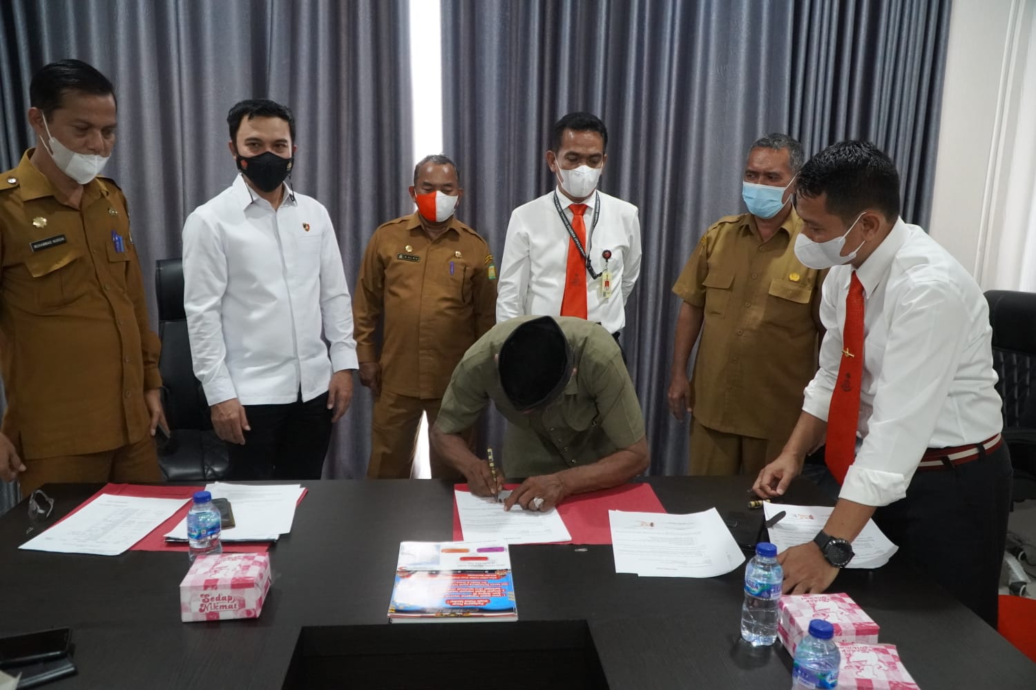 apjn.net – Banda Aceh – Ditreskrimsus Polda Aceh menginisiasi penandatangan surat pernyataan pelaksanaan Protokol Kesehatan (Prokes) di Banda Aceh. Sebagai salah satu unsur Satuan Tugas Penegakan Hukum (Satgas Gakkum) Covid-19.